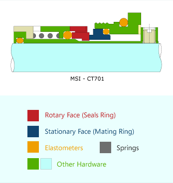 Seal Type : MSI-CT701The MSI-CT701 type is a simple-to-install, unitized cartridge mounted mechanical seal which requires no measuring for installation. The seal faces are protected from damage and contamination from dirt and foreign particles.