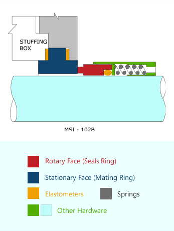 Seal Type : MSI-102BThe type MSI-102B is multi spring externally mounted balanced mechanical seal.It has ‘O’ Ring as a Secondary Sealing member.This seal are independent of direction of rotation.
