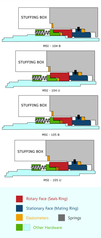 Seal Type : MSI-104B, MSI-104U, MSI-105B & MSI-105UThis Series MSI-104 & MSI-105 are multi spring Balanced and Unbalanced designed mechanical seal.This seals are independent in the direction of rotation.
