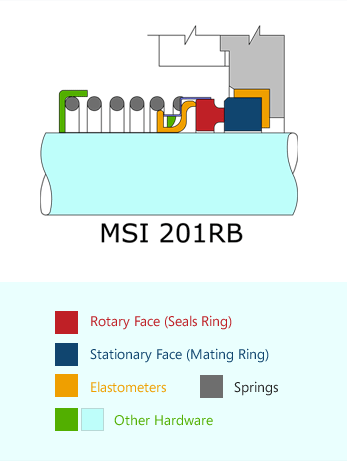 Seal Type : MSI-201RBThe Type MSI-201RB is single coil spring rubber bellow seal. Most versatile and widely used in a variety of applications s it is easy to install and economical. Shaft run out is compensated by rubber bellow and spring due to its self aligning capability.