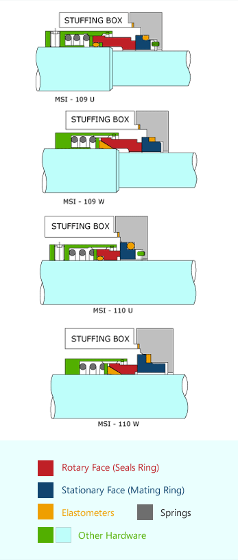 All parts of the seal are interchangeable, one can convert MSI-109U to MSI-109W and MSI-110U to MSI-110W only by changing it’s seal ring and it’s elastomer. This is ideal for stock rationalization.