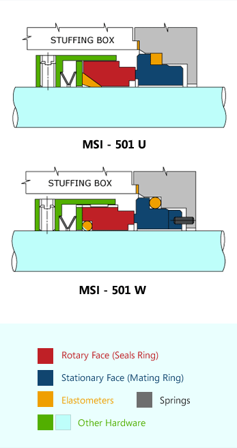 Seal Type : MSI-501U & MSI-501WThe Series MSI-501 is single Wave springs seal designed for universal applications and ideal suited for standardization.The main advantage of these seal is that it has a wave spring which is laterally stable, lightweight, compact, and easy to install.